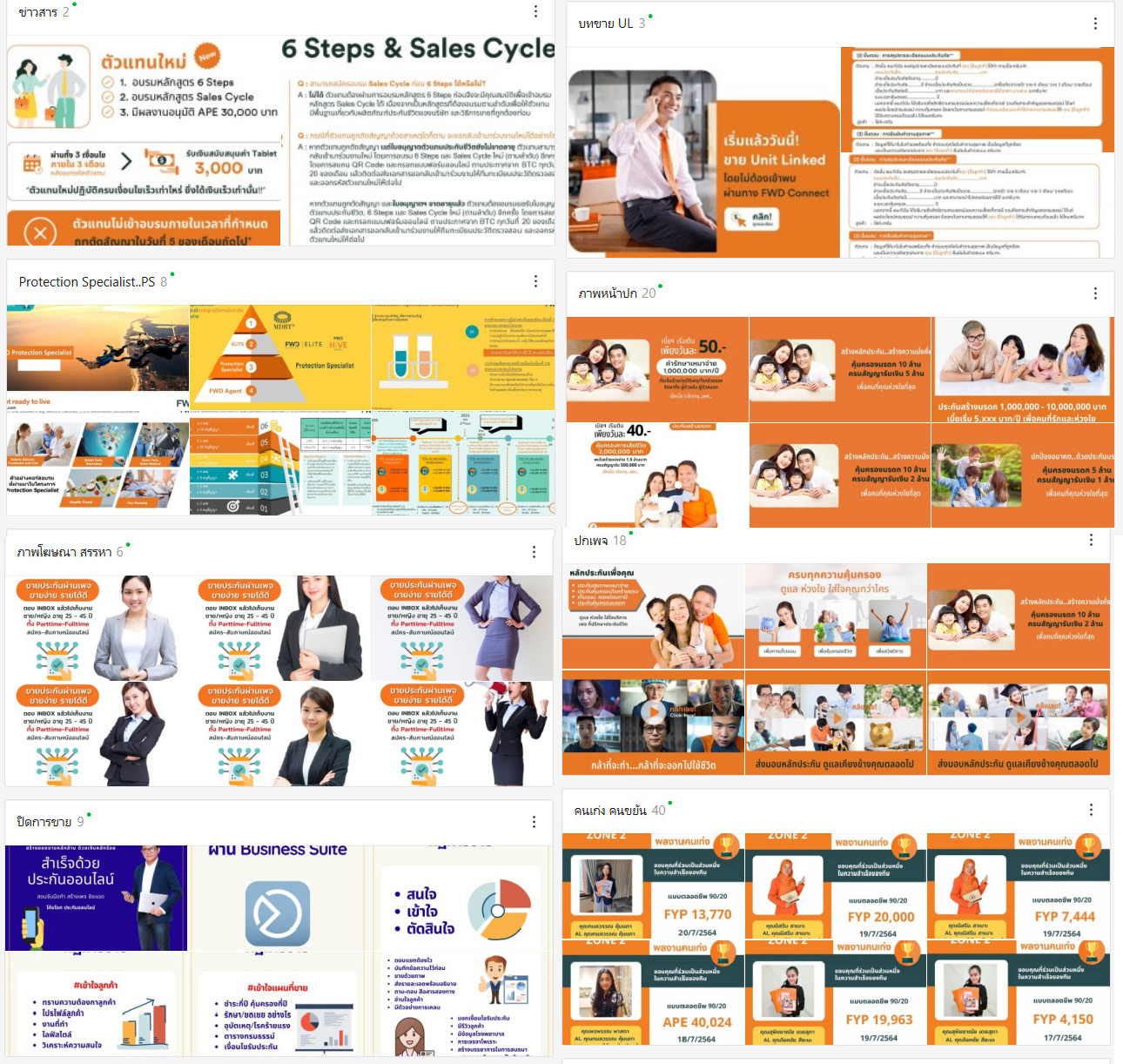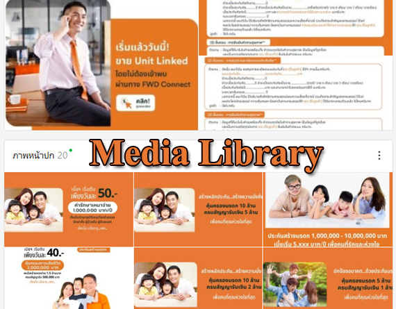 สื่อทางการตลาด ใช้สำหรับโพสต์หรือโปรโมท ในสื่อโซเชียลต่างๆ เช่น รูปภาพปกเพจ รูปเชิญชวนเข้าร่วมธุรกิจประกันชีวิตกับเอฟดับบลิวดี